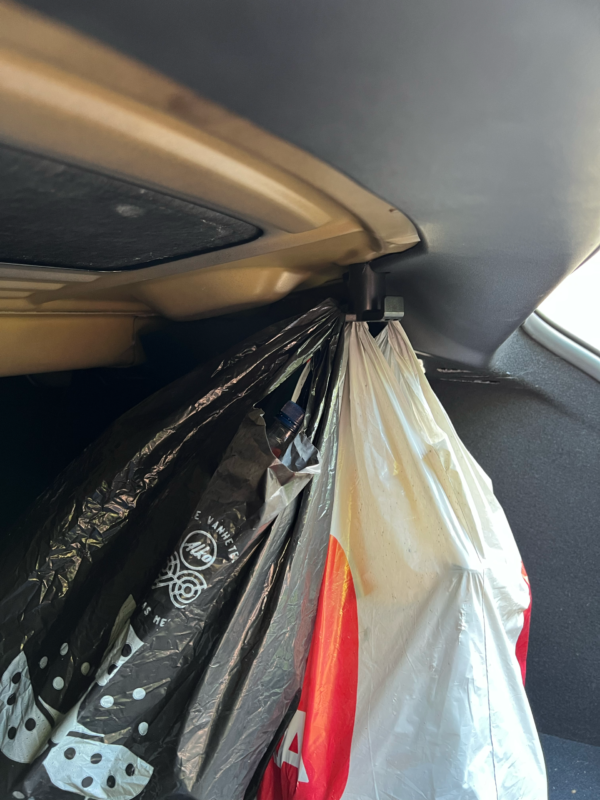 Silti todella hyödyllinen kassikoukku takakonttiin.
